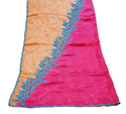 Indian Vintage Pink & Peach Dupatta Pure Silk Long Stole Hand Embroidered Scarves Floral Design Stole Veil Wrap Sequins