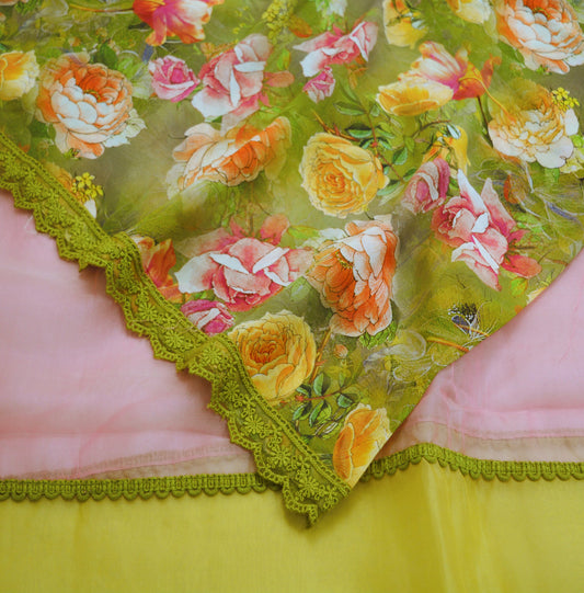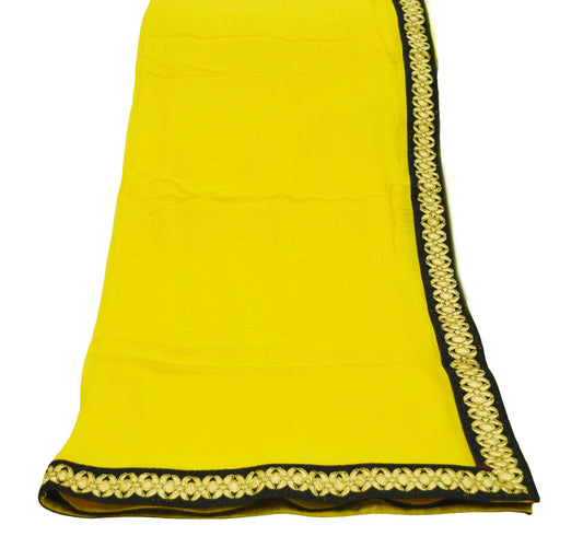 Indian Vintage Yellow Dupatta Blend Chiffon Long Stole Embroidered Scarves Floral Design Stole Veil Wrap