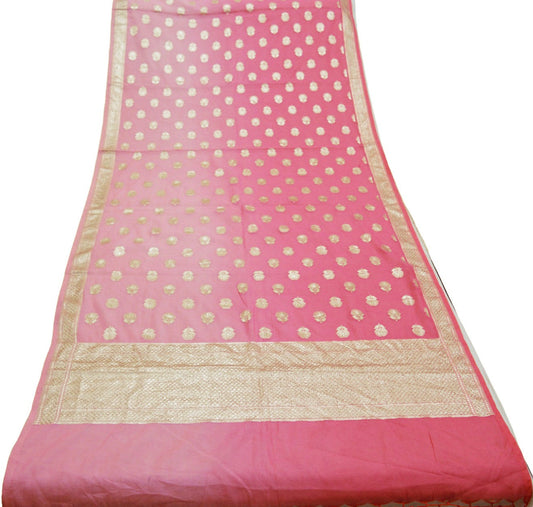 Indian Vintage Pink Dupatta Long Stole Art Silk Woven Brocade Indian Scarves Veil Scarf Wrap Hippie Boho Soft Floral