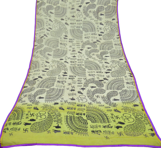 Indian Vintage Dupatta Ivory & yellow Long Stole Hand Embroidered Block Print Pure Chanderi Silk Indian Scarves Veil Golden Zari