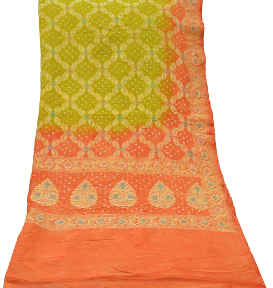 Indian Vintage Green & Orange Dupatta Long Stole Cotton Woven Bandhani Veil Scarves soft Boho Wrap Hijab