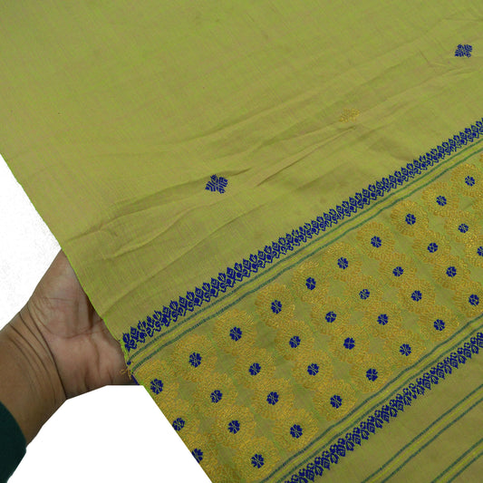 Indian Vintage Dupatta Green Long Stole Woven Pure Cotton Scarves Veil Golden Zari Soft Wrap Hijab Boho