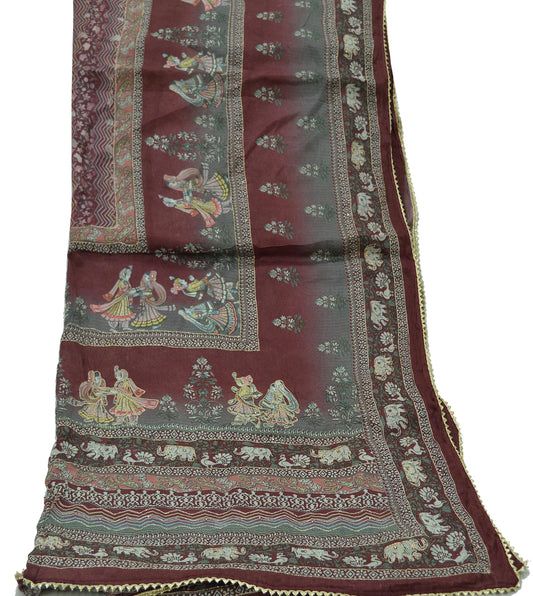 Women Indian Vintage Dupatta Maroon & gray Long Stole Pure silk Digital Printed Dupatta Veil Scarves soft Boho Wrap Dressmaking Floral