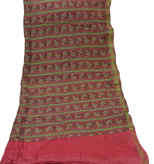 Indian Green Vintage Dupatta Long Stole Printed Woven Pure Chanderi Silk Indian Scarves Veil Golden Zari Soft Fringes