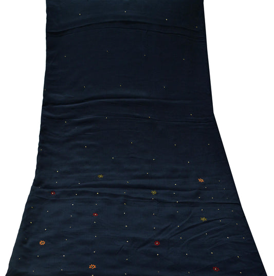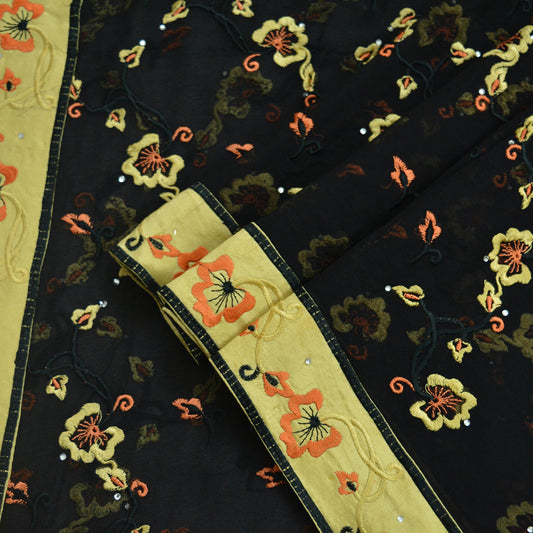 Indian Vintage Black Dupatta Long Stole Pure Georgette Silk Hand Embroidered Indian Scarves Veil Scarf Wrap Hippie Boho Soft