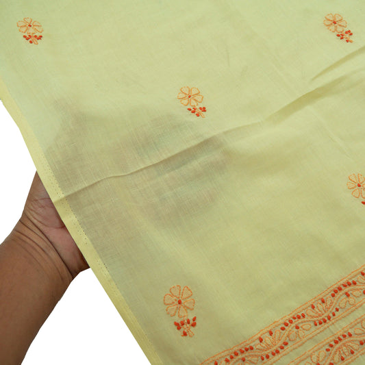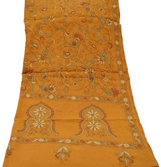 Indian Vintage Dupatta Yellow Long Stole Pure Cotton Hand Embroidered Kantha Scarves Veil Scarf Wrap For Women's