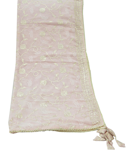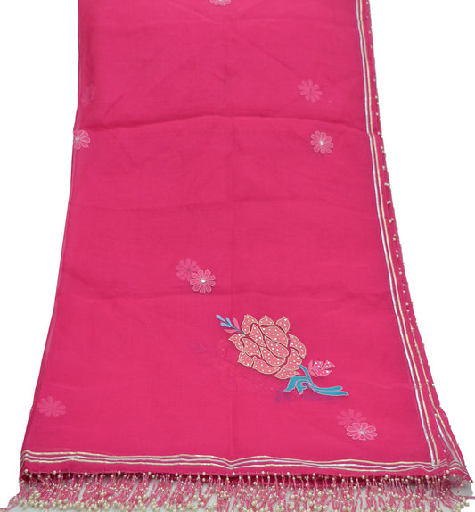 Indian Vintage Dupatta Pink Long Stole Pure Organza Silk Hand Embroidered Indian Scarves Veil Zari Sequins