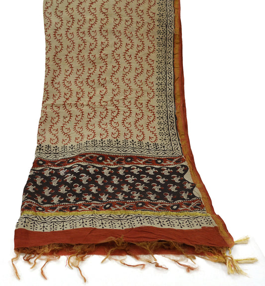 Indian Vintage Ivory Dupatta Long Stole Printed Hijab Blend Cotton Indian Scarves Veil Soft