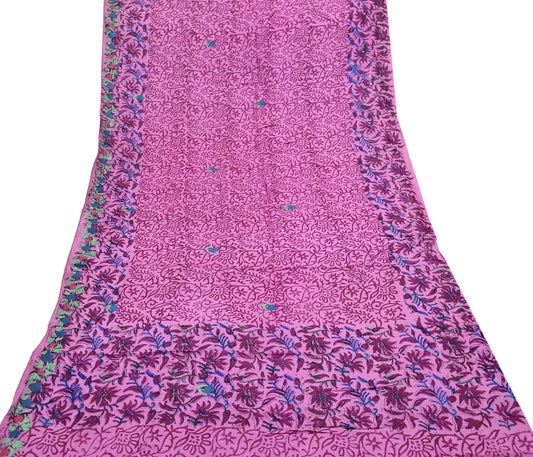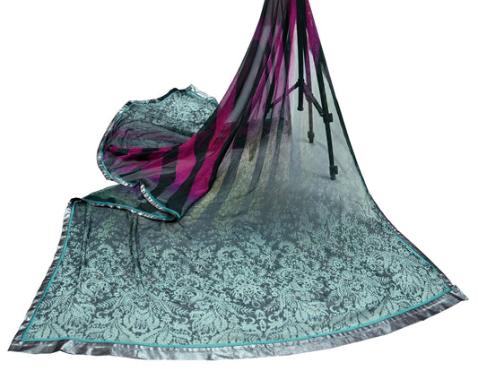 Indian Vintage Dupatta Green & Purple Long Stole Hand Embroidered Printed stole Pure Georgette Silk Indian Scarves Veil Wrap Soft