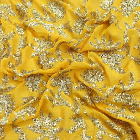 Indian Vintage Dupatta Yellow Pure Georgette silk Long Stole Embroidered Scarves Stole Veil Wrap Sequins
