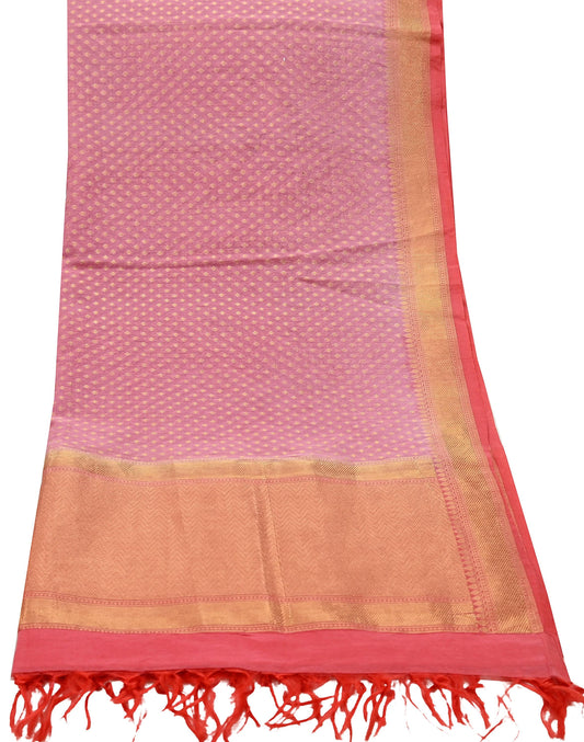 Indian Vintage Dupatta Pink Long Stole Hand Woven Pure Chanderi Silk Scarves Veil Zari Soft Fringes Scarf Wrap Boho