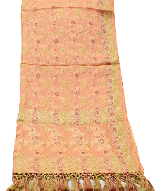 Indian Vintage Dupatta Peach Long Stole Pure Silk Hand Woven Scarves Veil Scarf Wrap Floral