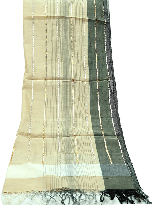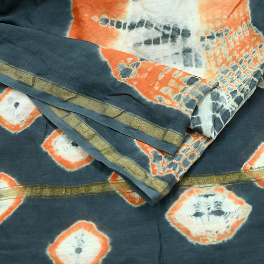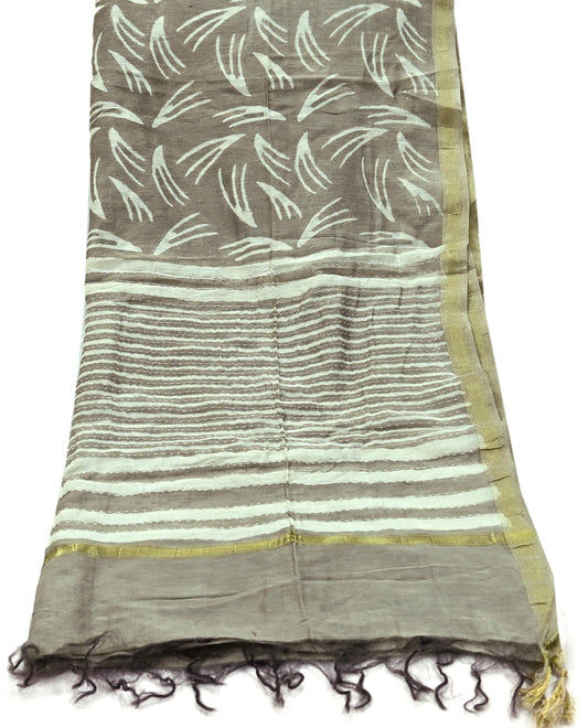 Indian Vintage Gray Dupatta Long Stole Hand Tie-Dye Print Pure Chanderi Silk Scarves Veil Golden Zari