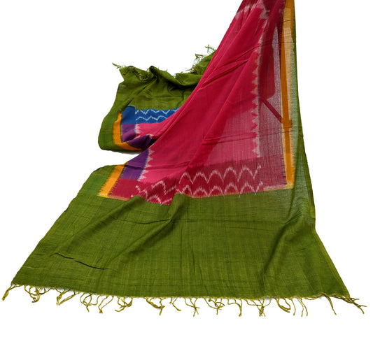 Indian Vintage Green & Pink Dupatta Long Stole Woven Pure Cotton Scarves Veil Scarf Soft Fringes Boho