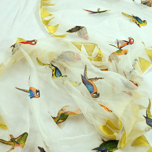 Indian Vintage Dupatta White Long Stole Organza Embroidered Scarves Veil Soft Design Fringes Scarves Scarf Parrot