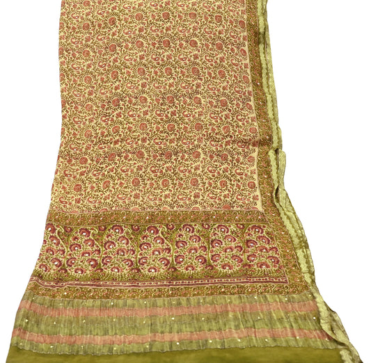Women Indian Vintage Dupatta Green & beige Long Stole Pure silk Digital Printed Dupatta Veil Scarves soft Boho Wrap Dressmaking Floral