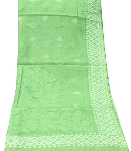 Indian Vintage Dupatta Green Long Stole Printed Woven Pure Silk Scarves Veil Soft Fringes