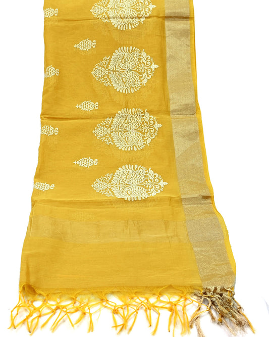 Indian Vintage Mustard Dupatta Long Stole Chanderi Woven Scarves Veil Scarf Wrap Hippie Boho Soft Floral Fringes