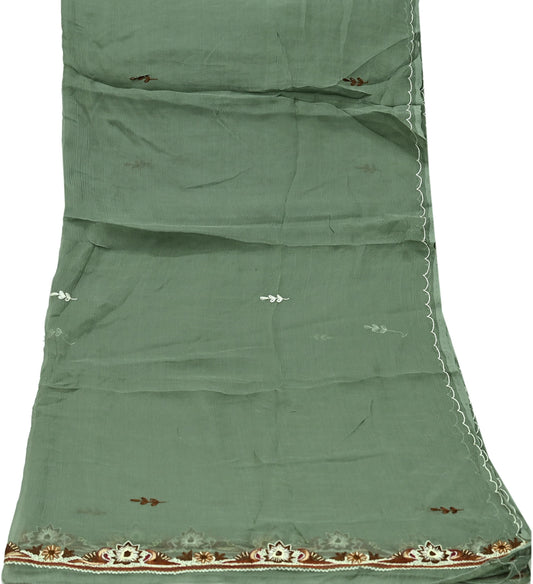 Indian Vintage Green Dupatta Pure Chiffon silk Long Stole Hand Embroidered Scarves Floral Design Stole Veil Wrap