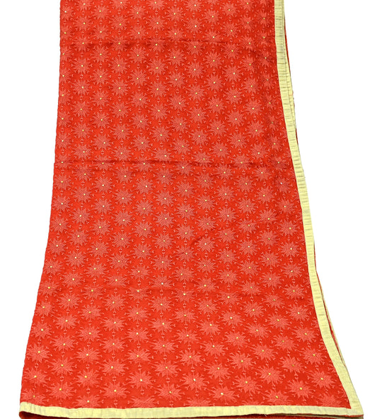 Indian Vintage Dupatta Orange Pure Organza Silk Long Stole Hand Woven Scarves Veil Zari Sequins