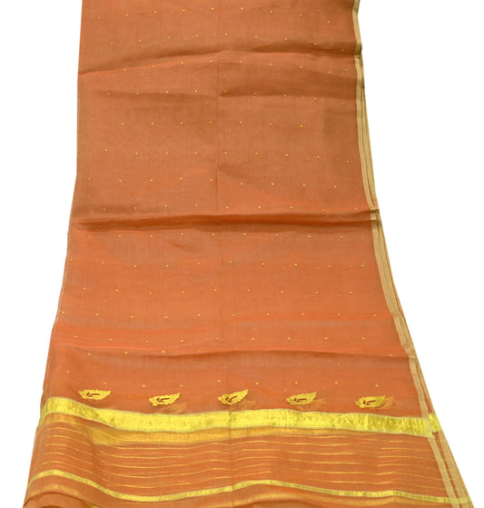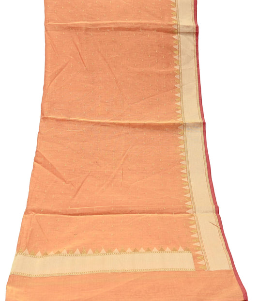 Indian Vintage Dupatta Peach Long Stole Woven Pure Chanderi Cotton Scarves Veil Golden Zari Soft Stripes Design