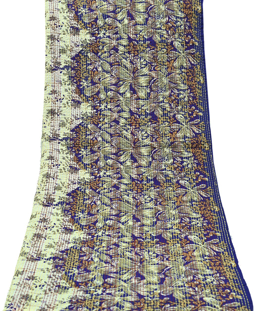 Indian Vintage Dupatta Purple & Ivory Long Stole Pure Cotton Printed Hand Embroidered Kantha Scarves Veil Scarf Wrap For Women's