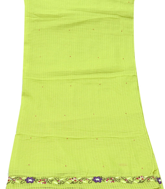 Indian Vintage Dupatta Lemon Green Pure silk Long Stole Hand Embroidered Scarves Floral Design Stole Veil Wrap