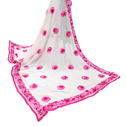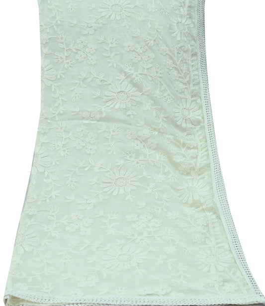 Indian Vintage White Dupatta Blend Chiffon Long Stole Embroidered Scarves Floral Design Stole Veil Wrap