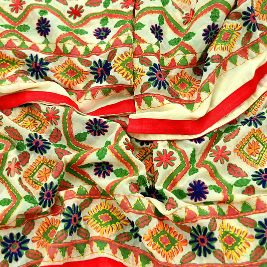 Indian Vintage Dupatta Ivory Long Stole Georgette Hand Embroidered Bagh Phulkari Stole Scarves Party wear