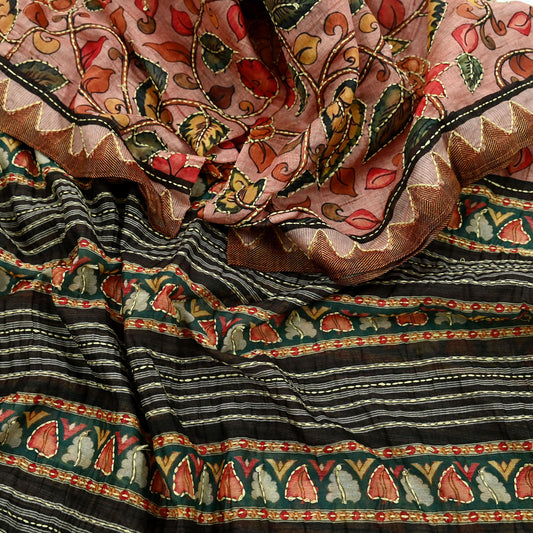 Indian Vintage Dupatta Black Long Stole Pure Cotton Hand Embroidered Kantha Scarves Veil Scarf Wrap For Women's