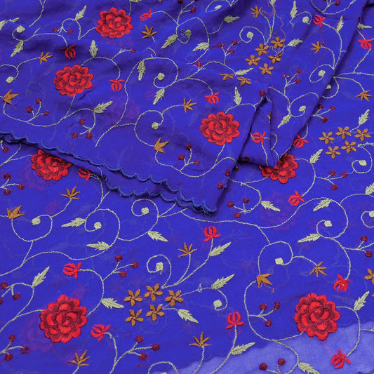 Indian Vintage Dupatta Blue Pure Georgette silk Long Stole Embroidered Scarves Stole Veil Wrap