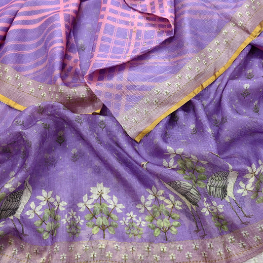 Women Indian Vintage Dupatta Purple Long Stole Pure silk Printed Dupatta Veil Scarves soft Boho Wrap Dressmaking Floral Design