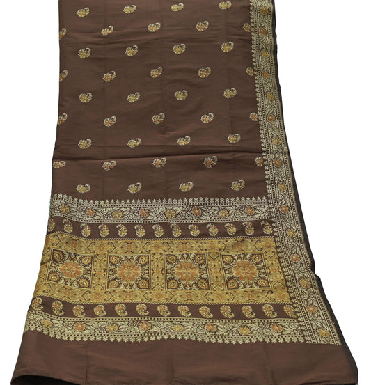 Indian Vintage Brown Dupatta Long Stole Pure Silk Hand Woven Scarves Veil Scarf Wrap Floral Zari Border