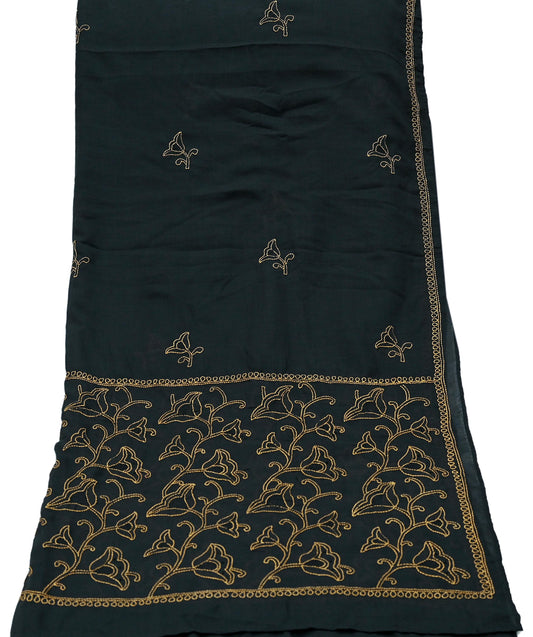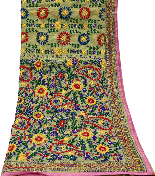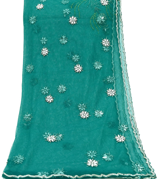 Indian Vintage Green Dupatta Pure Chiffon silk Long Stole Hand Embroidered Scarves Floral Design Stole Veil Wrap Sequins