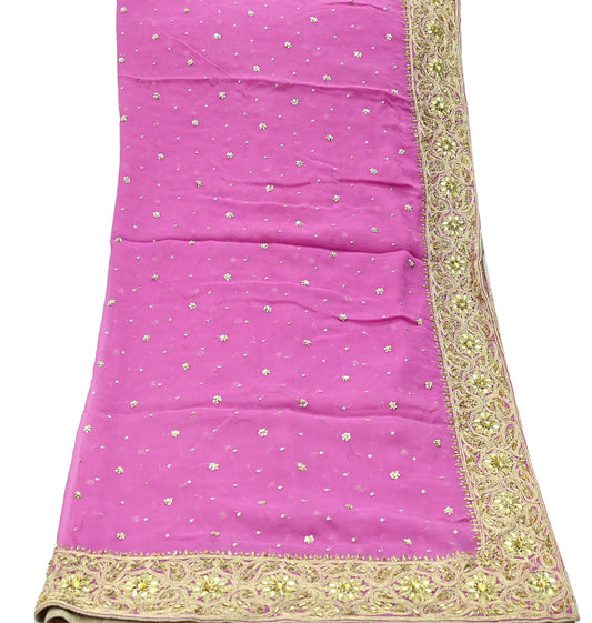 Indian Vintage Pink Dupatta Pure Georgette silk Long Stole Hand Embroidered Scarves Stole Veil Wrap Sequins Dabka/ Zardozi