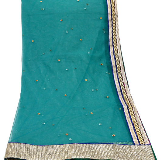 Indian Vintage Green Dupatta Net Mesh Long Stole Hand Embroidered Gota Patti Scarves Veil