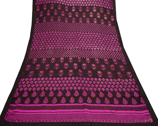 Indian Vintage Brown Dupatta Long Stole Hand Block Print Pure Silk Scarves Veil Hijab
