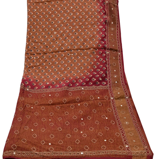 Indian Vintage Dupatta Maroon & Brown Long Stole Pure Silk Hand Embroidered Printed Fabric Scarves Veil Scarf Wrap Hijab Party wear veil