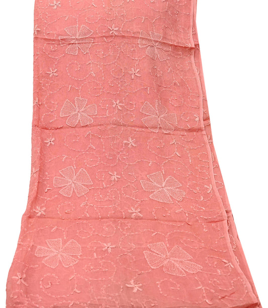 Indian Vintage Dupatta Peach Long Stole Hand Embroidered kantha stole Scarves Veil Wrap Soft Floral