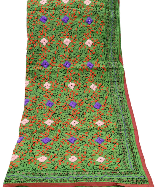 Indian Vintage Dupatta Green Long Stole Chanderi Hand Embroidered Bagh Phulkari Stole Scarves Party wear Veil Hijab Wrap Scarf