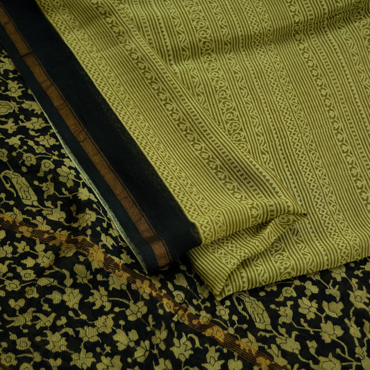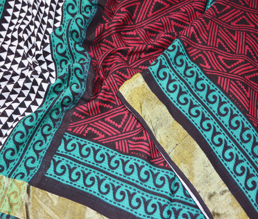 Indian Vintage Dupatta Green & Black Dupatta Long Stole Block Print Pure Chanderi Silk Indian Scarves Veil Golden Zari