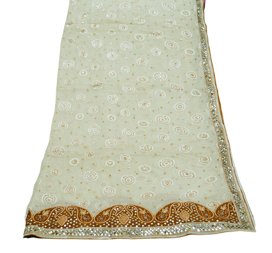 Indian Vintage Ivory Dupatta Pure Chiffon silk Long Stole Hand Embroidered Scarves Floral Stole Veil Wrap Copper Zardozi Zari