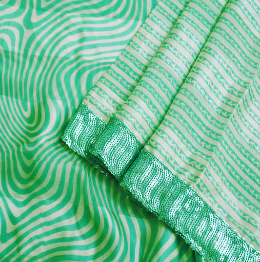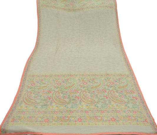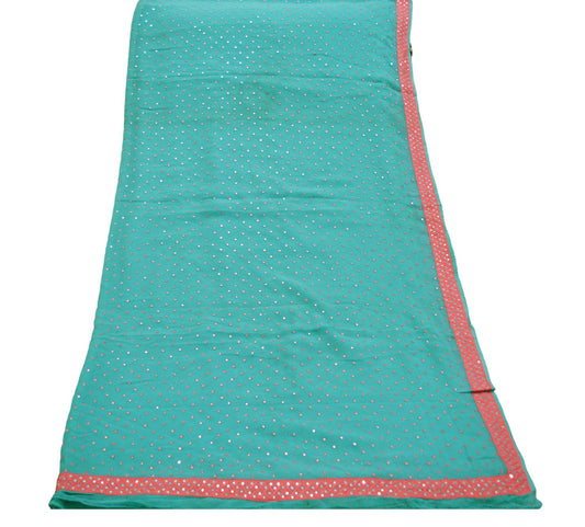 Indian Green & White Vintage Dupatta Long Stole Printed Pure Georgette Silk Indian Scarves Veil Wrap Soft Sequins