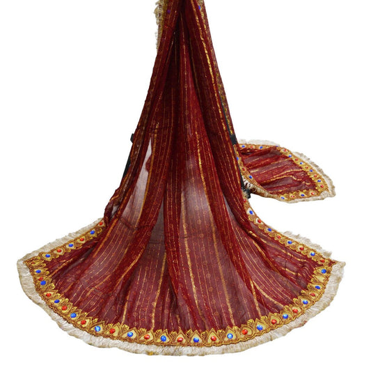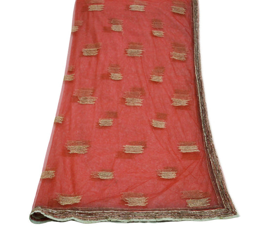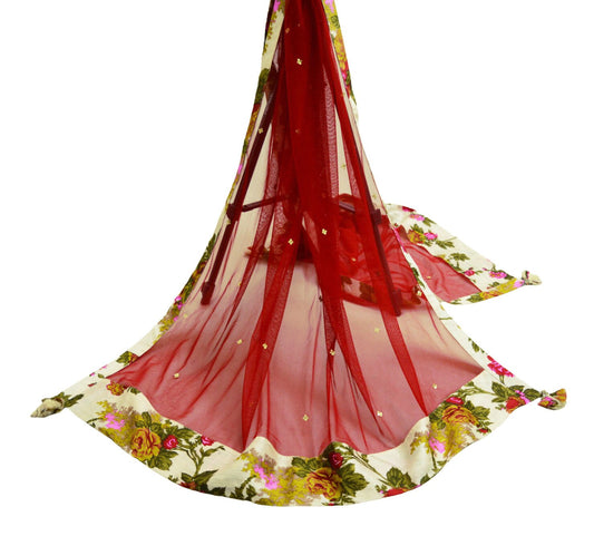 Indian Vintage Red Dupatta Net Mesh Long Stole Woven Scarves Printed border work Sequins