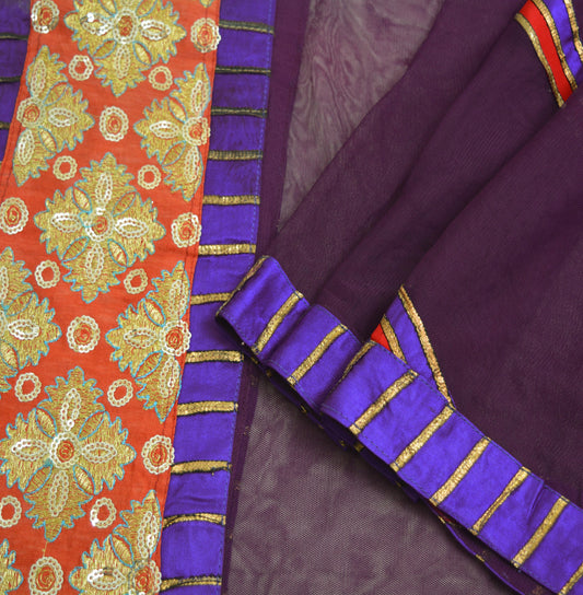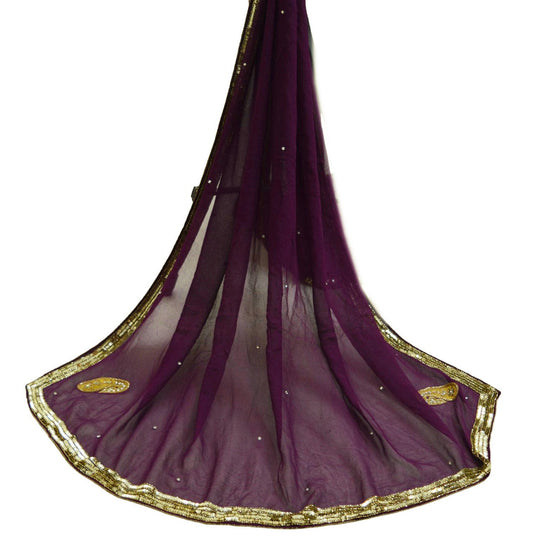 Indian Vintage Purple Dupatta Pure Georgette silk Long Stole Hand Embroidered Scarves Stole Veil Wrap Sequins