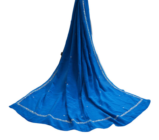 Indian Vintage Blue Dupatta Pure Georgette silk Long Stole Hand Embroidered Mukesh work Scarves Sequins Stole Silver Mirror