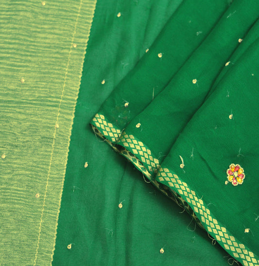 Indian Vintage Green Dupatta Long Stole Embroidered Chanderi Scarves Veil Golden Zari Soft Fringes Zardozi/ Dabka