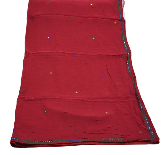 Indian Vintage Red Dupatta Pure Georgette silk Long Stole Hand Embroidered Mukesh work Scarves Stole Silver Mirror