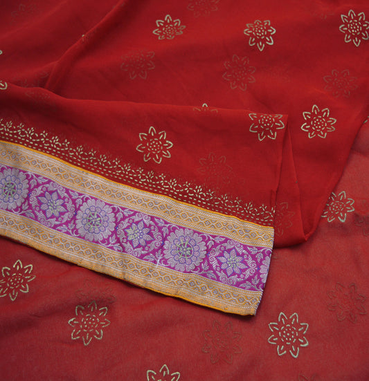 Indian Vintage Red Dupatta Pure Georgette silk Long Stole Hand Painted work Scarves Stole Brocade border