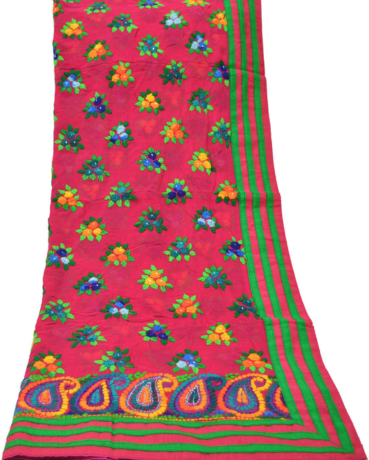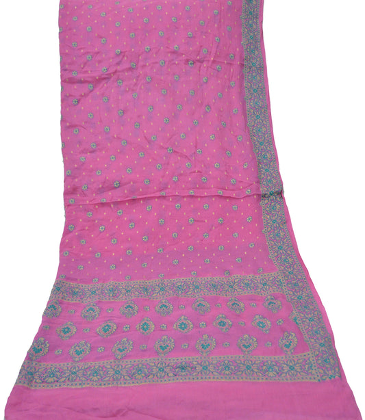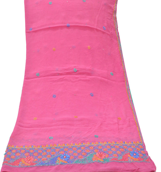 Indian Vintage Pink Dupatta Long Stole Blend Georgette Hand Embroidered Phulkari Stole Scarves Party wear